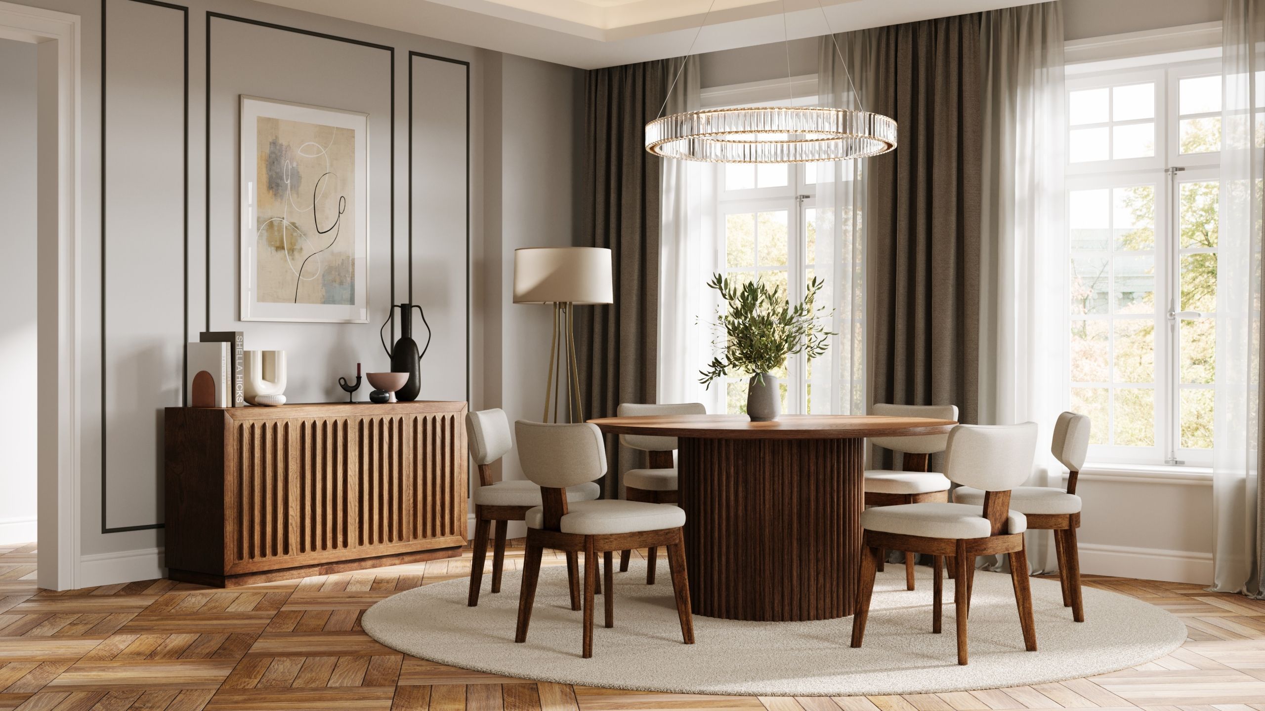 Instead of a standard white background, Jofran prefers cozy neutral tones. With mood boards provided as guidance, our team created a custom CG scene with light wooden flooring and an off-white wall. Every 3D model was rendered in 4K in this environment.